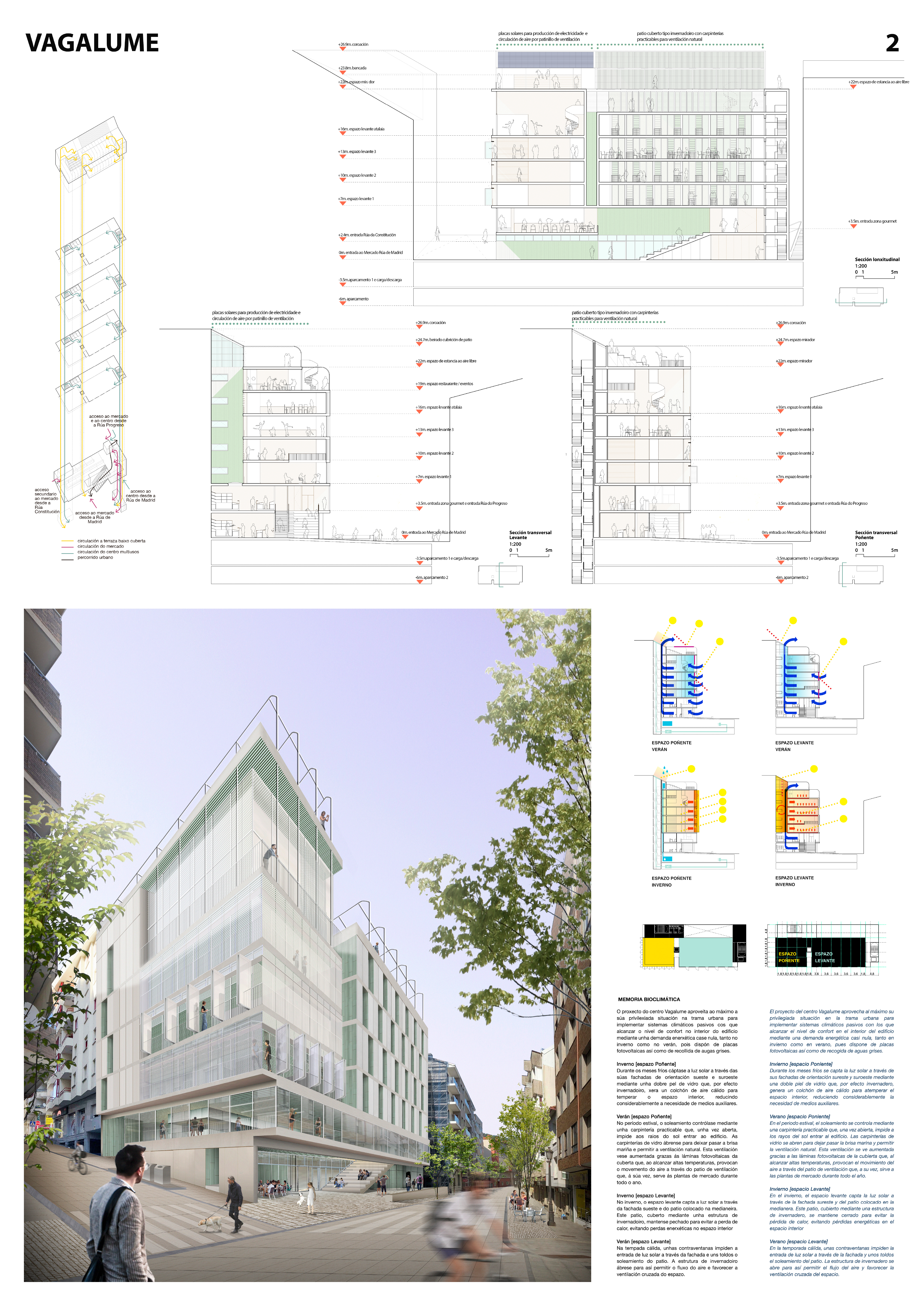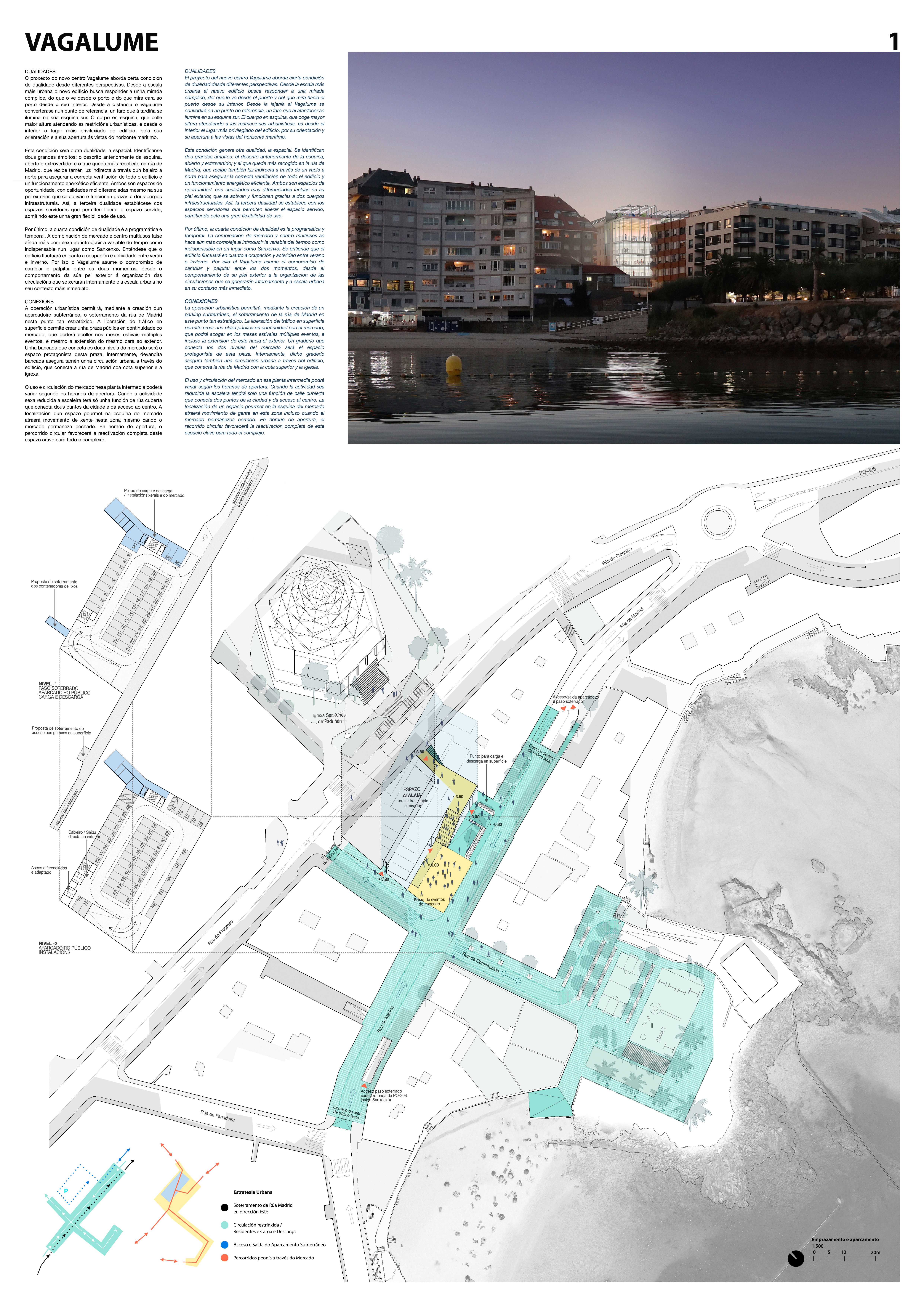 El proyecto del nuevo Mercado de Sanxenxo aborda cierta condición de dualidad desde diferentes perspectivas. Desde la escala más urbana el nuevo edificio busca responder a una mirada cómplice, del que lo ve desde el puerto y del que mira hacia el puerto desde su interior. Desde la lejanía el Vagalume se convertirá en un punto de referencia, un faro que al atardecer se ilumina en su esquina sur.